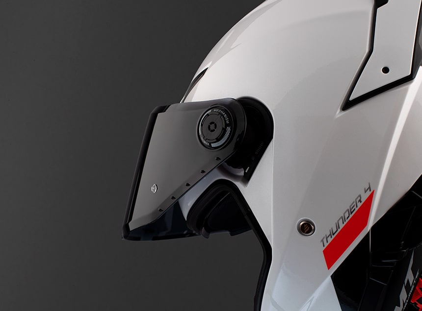 - Le Thunder 4 SV a été le premier casque avec visière solaire, homologué ECE 22.06 et dépassant les normes de qualité les plus rigoureuses à arriver sur le marché.