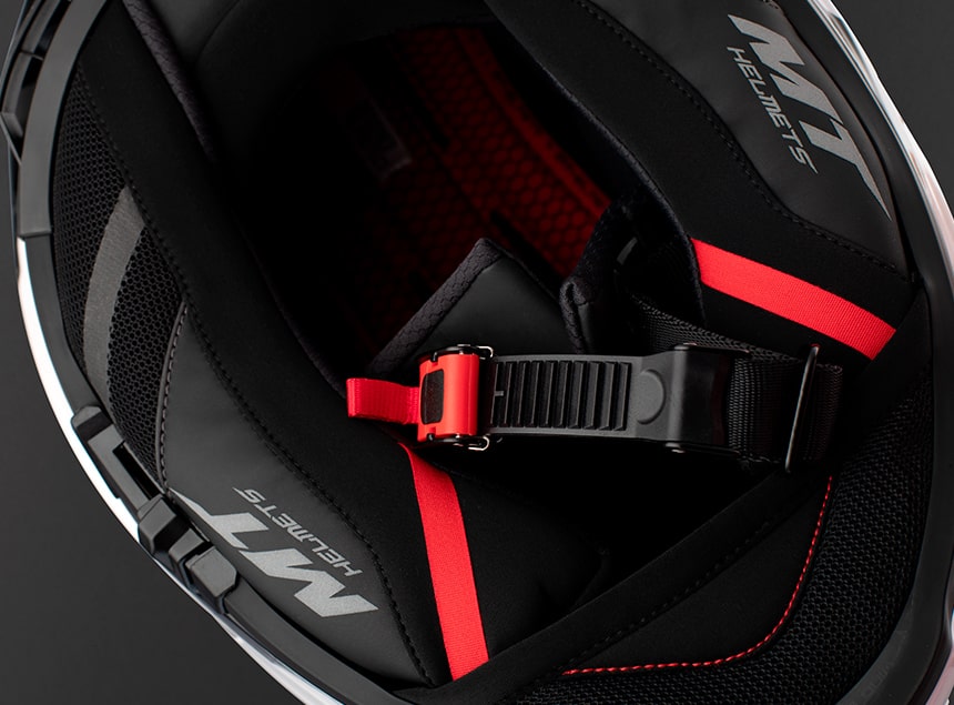 Système de rétention conçu pour empêcher toute ouverture intempestive. Ce système de fermeture, optimal pour les modèles sport-touring, offre le meilleur compromis entre confort et sécurité.